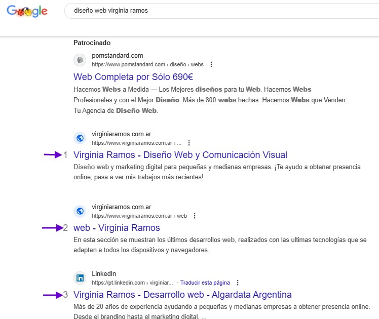Por otro lado, las páginas que ves debajo de esos enlaces patrocinados han logrado su lugar mediante